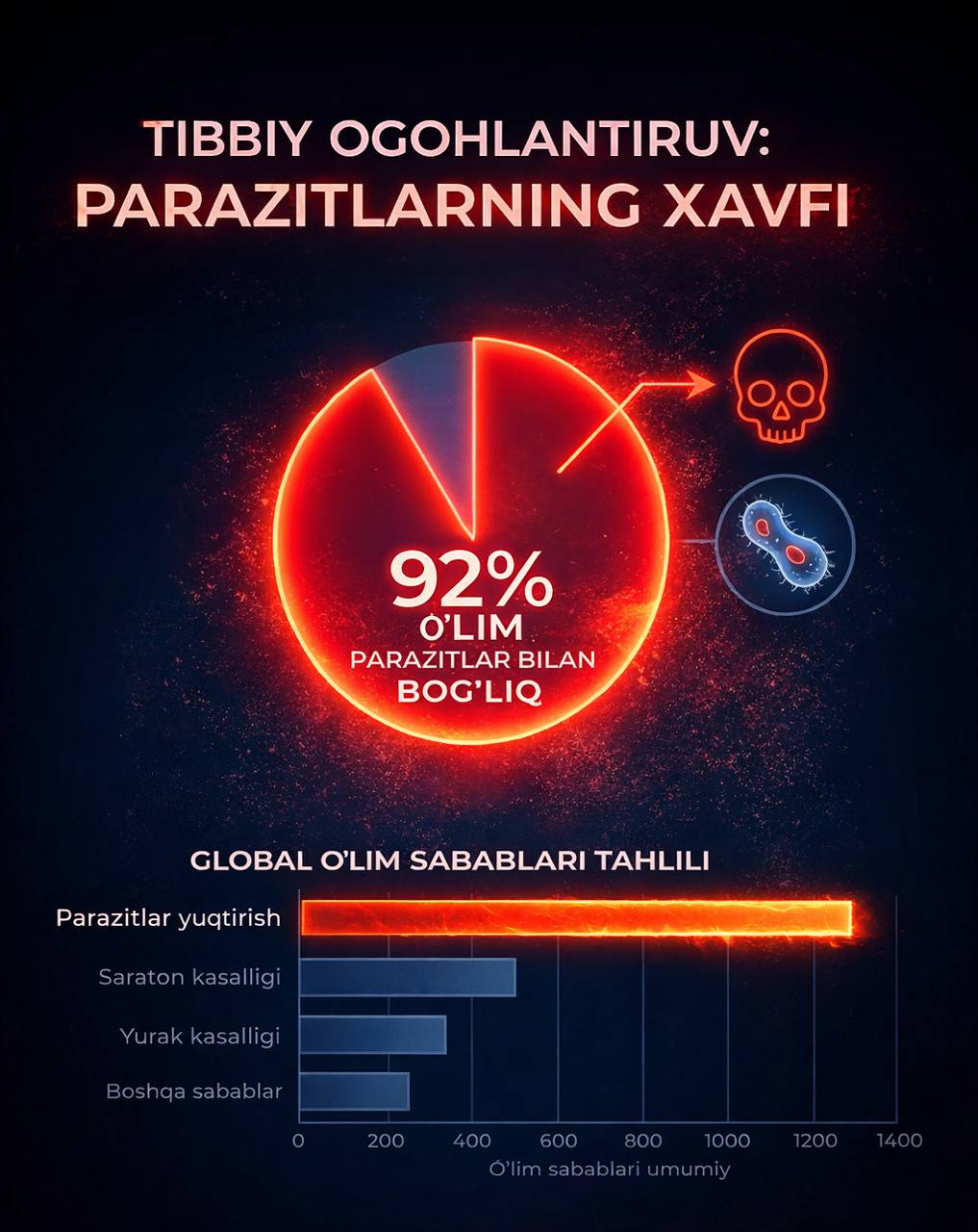 Статистика: 92% ўлим ҳолатлари паразитлар билан боғлиқ